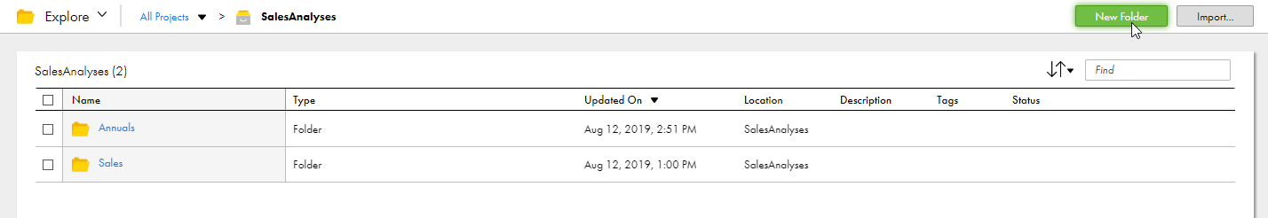 To create a project folder, go to the Explore page and open the project, and then click New Folder.